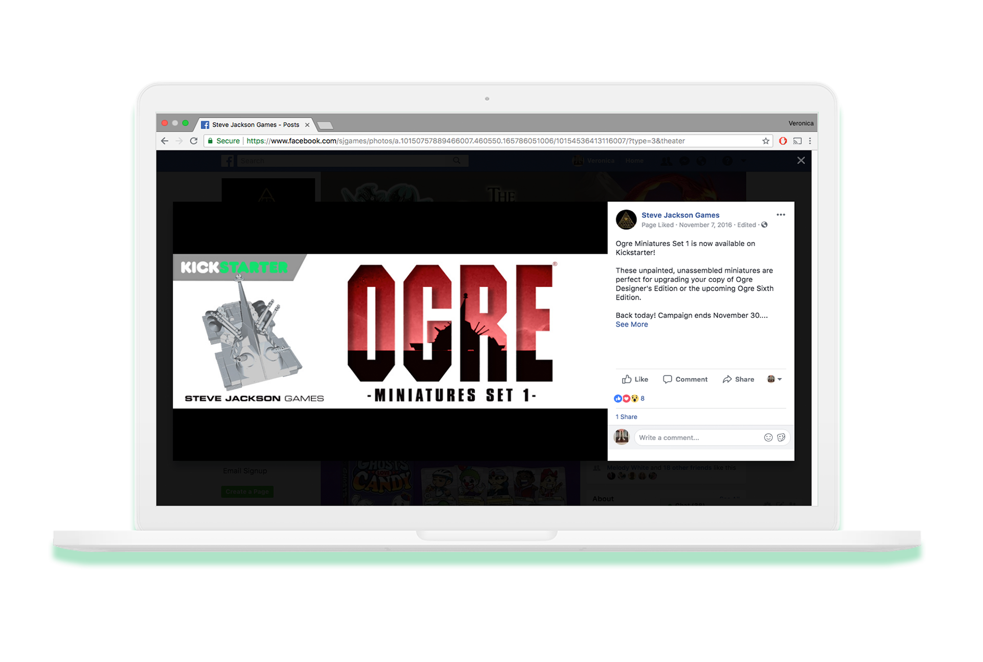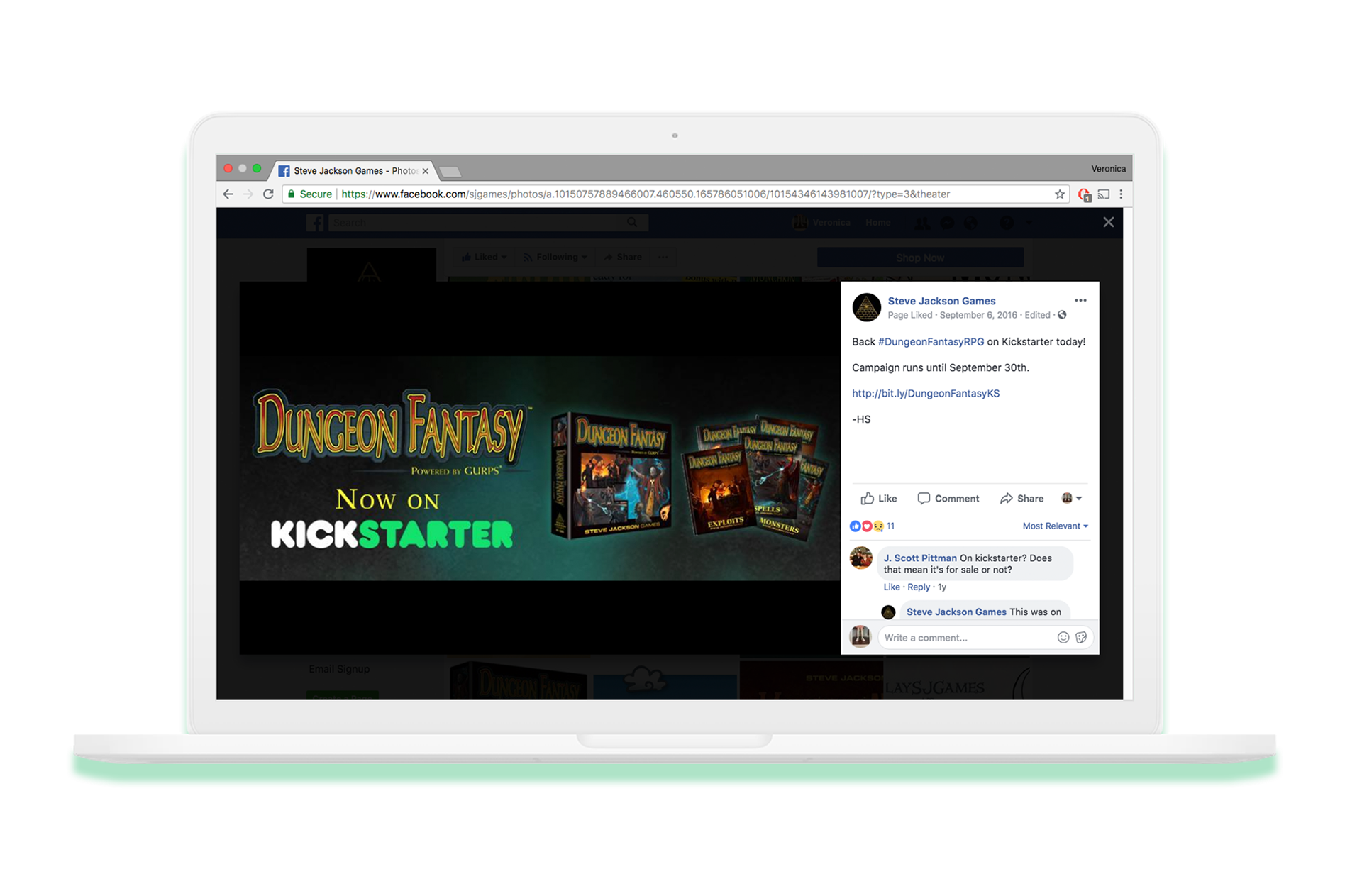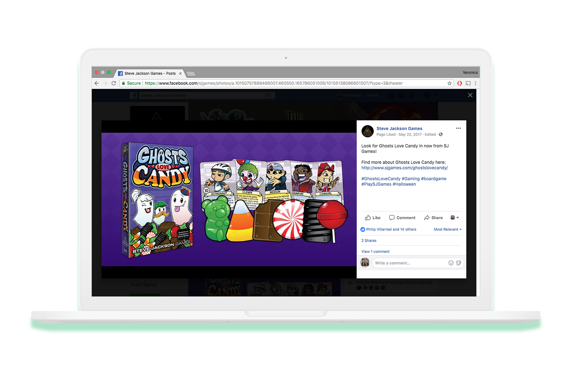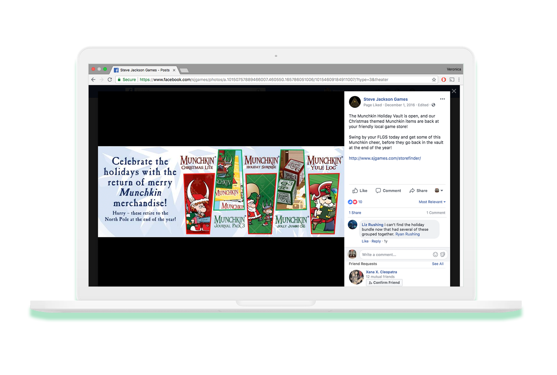 I designed images to be used on Facebook for Steve Jackson Games, a hobby board game company based in Austin, TX.